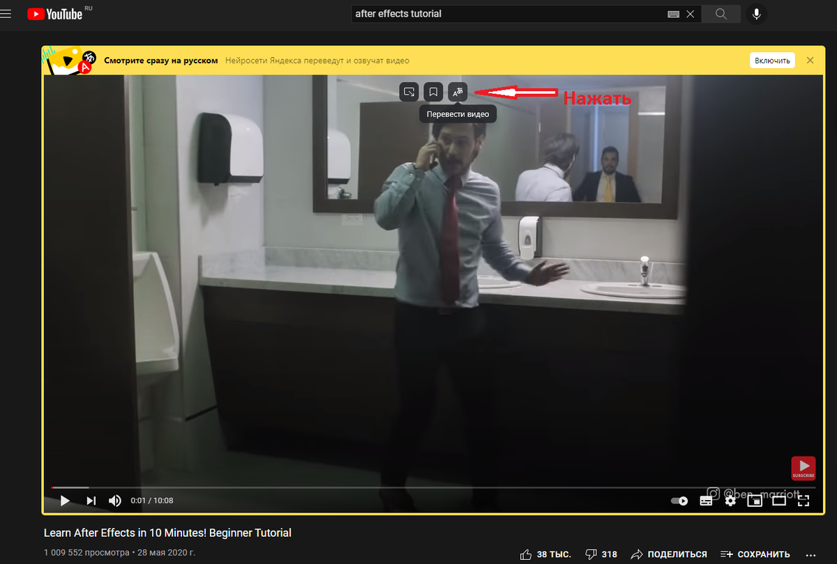 После того, как Яндекс браузер будет установлен, надо открыть Youtube и, выбрать нужное вам видео (на английском). Причем не нужно регистрироваться и входить в ваш аккаунт.