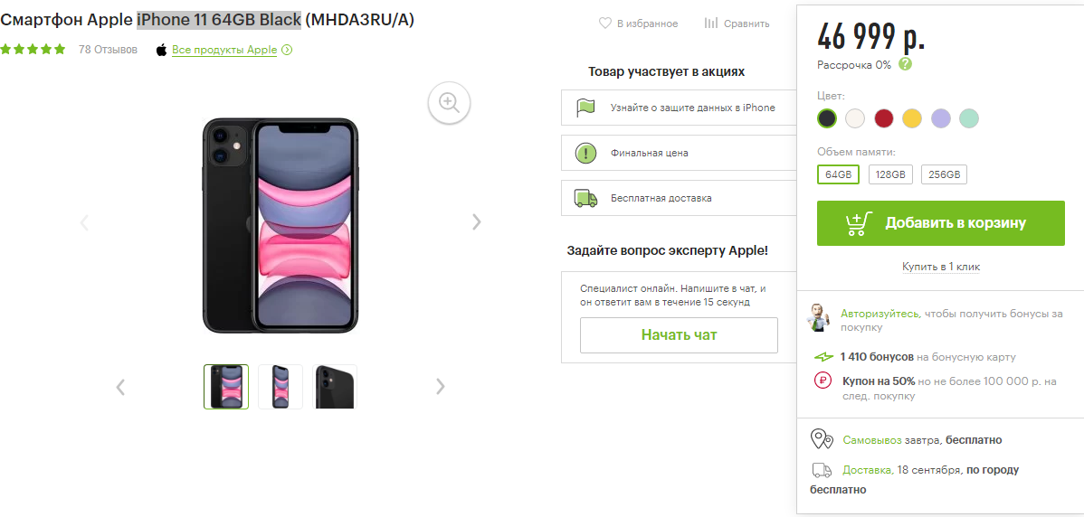 Здравствуйте, сегодня я бы хотел поговорить на тему которых волнует многих, люди задают себе вопрос "Где купить технику с самой дешевой ценой?" Сейчас я постараюсь вам помочь с этим вопросом и найти ответ на него. Во многих магазинах я покупал сам лично и могу посоветовать вам их. В пример я буду брать один из самых популярных брендов в мире телефонов(Apple) и сравнивать их цены в различных магазинах. Так же будем брать в расчеты стоимость доставки. 5. На пятое место я поставлю магазин один из самых популярных и крупных магазинов техники-Эльдорадо. Здесь можно приобрести себе #iPhone 11 64GB Black за 46 999 рублей. https://www.eldorado.ru 4.Четвертое место занимает магазин Ситилинк. Тоже очень известный магазин техники с огромным выбором.Можно приобрести iPhone 11 64GB Black за 45 200 рублей, но сейчас вместе скидкой можно приобрести за 43 478 рублей!!!Есть возможность самовывоза в любой город России. https://www.citilink.ru 3.Бронзу в нашем топе занимает не самый известный немецкий