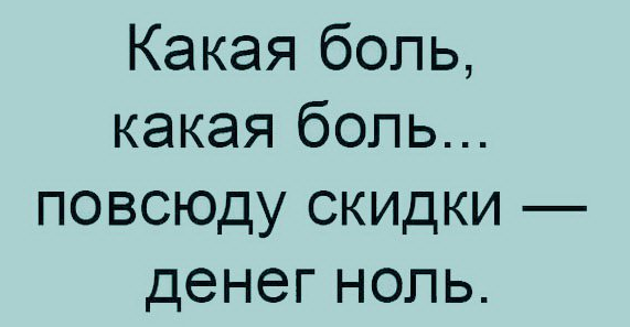 Приветствую всех, кто ищет смешные анекдоты! Новая порция смешных и интересных анекдотов, которые действительно стоят вашего внимания! ---------------------------------------------------------------------- Девушки делятся на 2 типа: хозяйственные и романтичные. Первые, увидев пыльную поверхность, протирают ее, а вторые рисуют на ней сердечко. ---------------------------------------------------------------------- Не тело красит человека, а антитело! ---------------------------------------------------------------------- Есть два типа людей: те, кто собирается в отпуск за неделю до его начала, и те, кто просыпается за 2 часа до вылета и пытается сообразить, где лежит паспорт. Обычно они женаты друг на друге. ---------------------------------------------------------------------- — Дорогая, я хочу хоть немного пожить для себя. — Ну поживи, пока я крашусь... ---------------------------------------------------------------------- — Вчера у сестры на даче пила самогон! Наутро будто заново родил