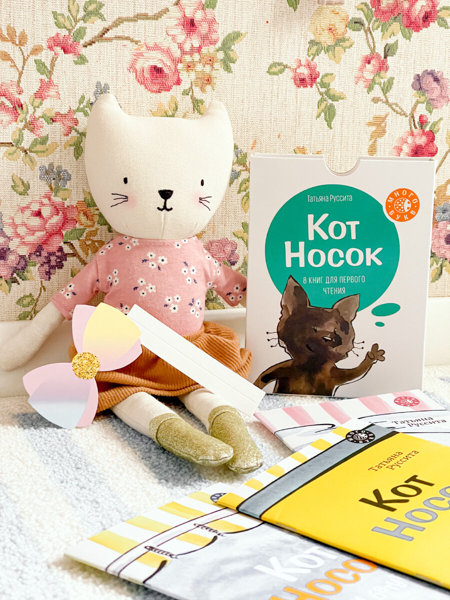 Чтение детям это отличный толчок в развитии не только для воображения и фантазии, но и для того, чтобы ребёнок смог запоминать буквы и словосочетания самостоятельно. Если ваш ребёнок только на пути к изучению алфавита и произношение слогов, то сегодняшняя тема для вас будет актуальна и полезна. В нашей коллекции детских книг случилось очередное пополнение. Сборник из 8ми небольших книг с картинками. Книги примечательны тем, что в них простые предложения, крупный шрифт и смешные, забавные, трогательные рассказы. Дети знакомятся с таким персонажем, как кот носок. У него много идей, мыслей в голове и каждый раз случаются интересные и порой поучительные истории. Благодаря небольшому и простому тексту ребёнок не только лучше запомнит сам рассказ, но и научится распознавать буквы. После чтения можно сделать акцент на какой нибудь книге и постараться проанализировать вместе с ребёнком ситуацию, в которую попал наш герой. Это поможет лучше воспринимать новый материал и заинтересует ребёнка н