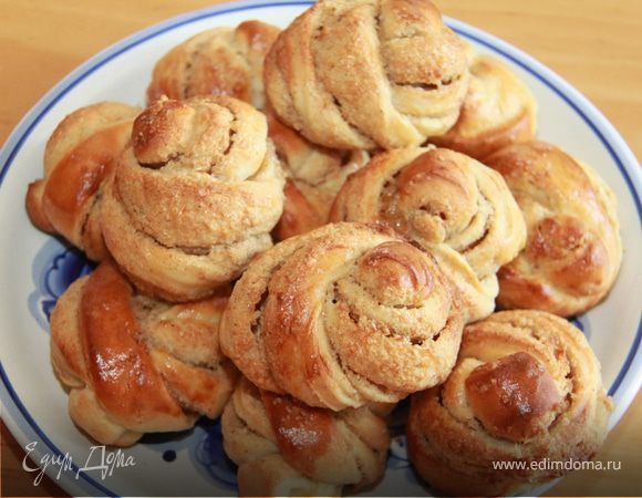 Переложить их на смазанный растительным маслом противень, накрыть полотенцем и дать расстояться. Затем смазать изделия желтком, посыпать оставшимся сахаром и выпекать в предварительно разогретой до 220 °С духовке до готовности.