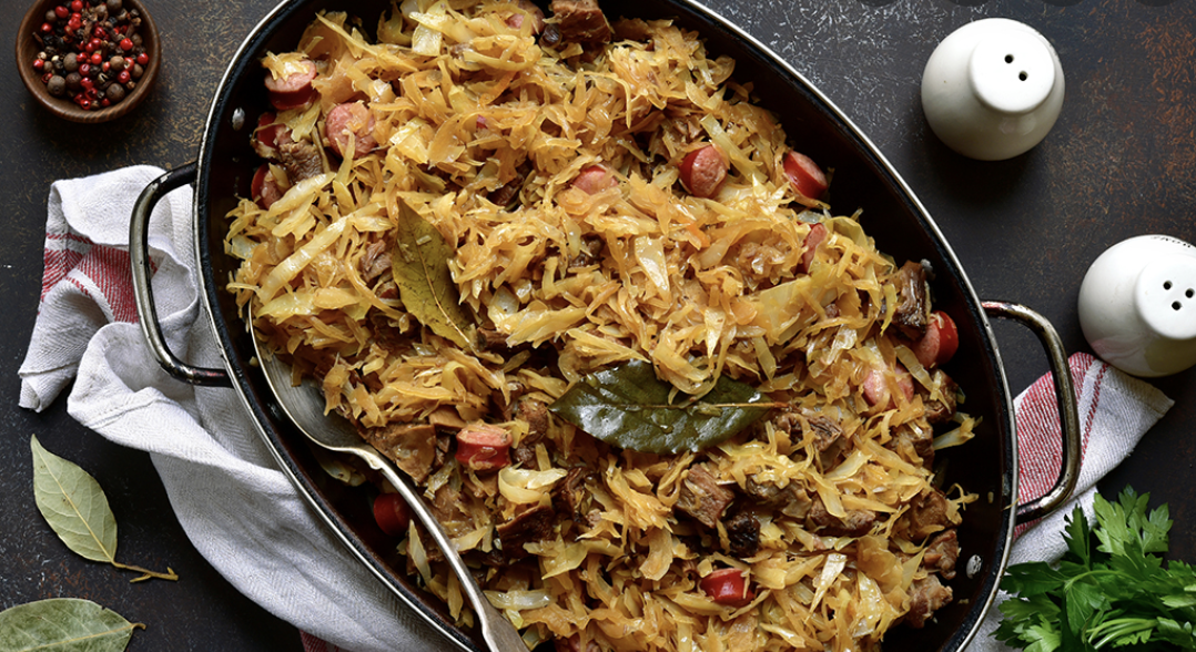 Старинное блюдо идеально подходит для холодного времени года. Оно вкусное, сытное и ароматное, с большим количеством витаминов. Бигос считается польским кулинарным наследием. Существует версия, что он попал в Польшу из Великого княжества Литовского благодаря королю Владиславу Ягайло. Он очень любил отведать блюдо после удачной охоты на привале. Сегодня бигос готовят в Белоруссии, Украине, Латвии и Литве. Раньше без него не обходился рождественский и пасхальный стол. Классический рецепт предполагает использование кислой квашеной капусты. Часто ее смешивают со свежей белокочанной. Мясная составляющая остается на усмотрение кулинара. В ход идут вырезка (говяжья или свиная), бекон, копченые колбаски (лучше домашние), дичь и пр. Овощи, пряности и красное или белое вино помогают раскрыть и дополняют вкус мяса. Существует несколько версий происхождения названия блюда. Самая популярная указывает на латинские слова bi (два) и gustus (вкус). Бигос на самом деле объединяет 2 вкуса - кислый и сла
