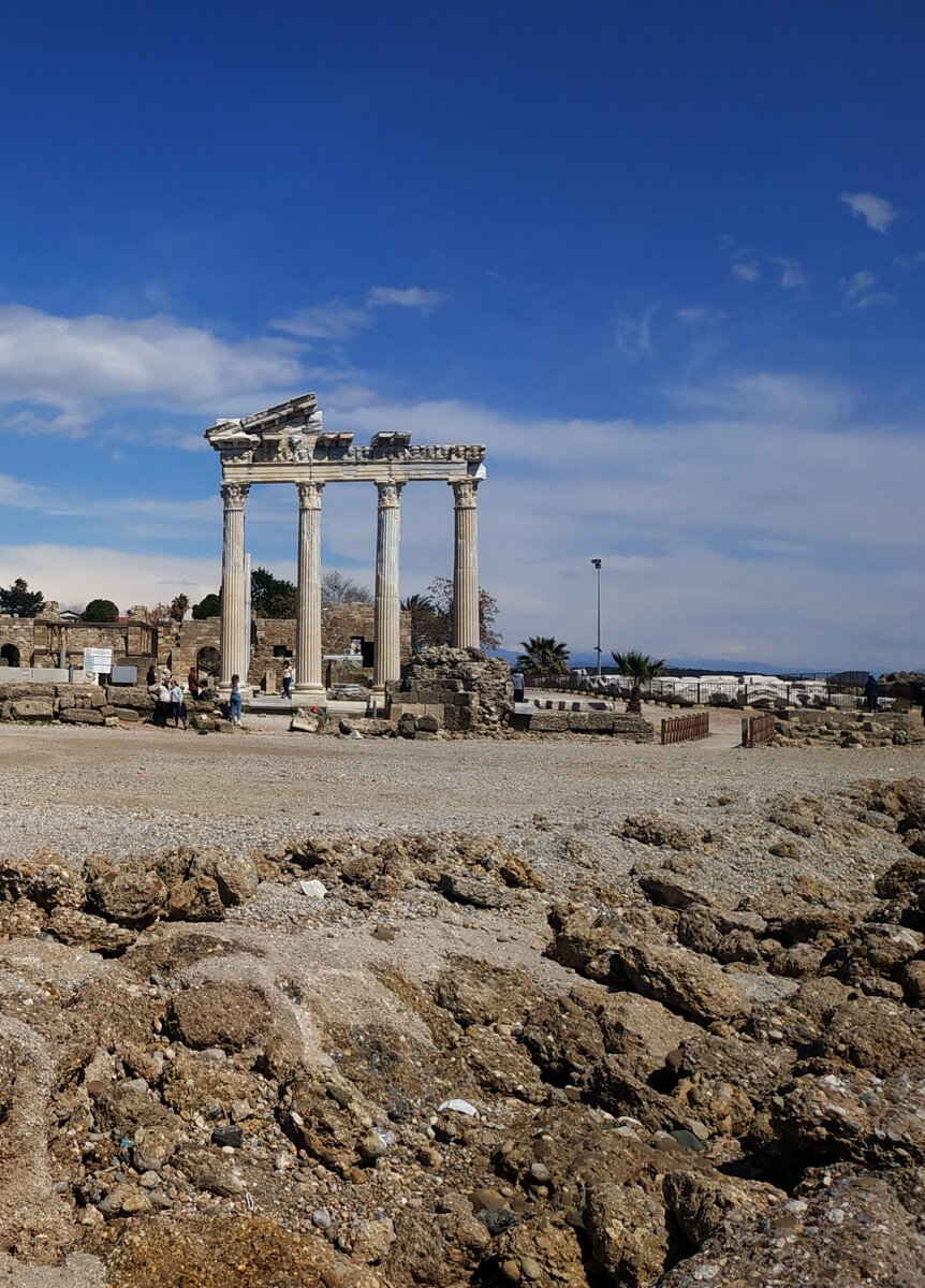 Сиде – это не только отельный и пляжный отдых. Сиде – это античный город с богатой историей и достопримечательностями. И прогулка по нему - это путешествие даже не в прошлое, а в древность! Поэтому отправляемся от отельной зоны по набережной в сторону города и окунаемся в его историю. Прогулка займёт у вас около 1,5-2 часов. 1. Древний Храм Апполона Храм Аполлона – постройка 2 века, разрушенная во время землетрясения. От храма осталось только 5 колонн из 66, но множество туристов ежедневно приходит посмотреть на них. Ходит легенда, что именно в храме Апполона встречались Клеопатра и римский военачальник Марк Антонийй. Уж не знаю, что насчёт любовных историй, но ощущение, что прикасаешься к чему-то очень древнему, здесь не покидает. Доступ к храму свободный. А рядом красивейшие гавани. 2. Археологический музей В древние времена Сиде был греческим городом с богатой историей и интересной судьбой. Об этом и поведает туристам Археологический музей. В музее 5 залов: Вход в музей – 10 турецки