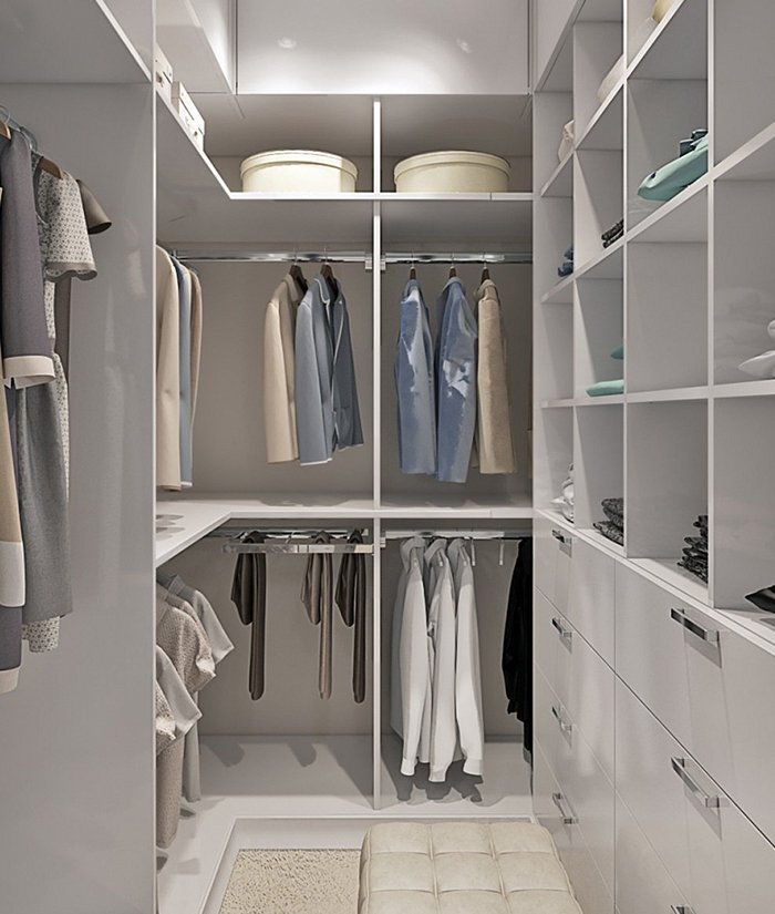 Гардероб для многих является большой проблемой, хочется сделать его максимально функциональным, но при этом компактным. Этот вопрос озадачивает многих. И так, давайте разберем что же делать? Многие считают, что отдельные комнаты для одежды это для богатых, да и тем более куда ее деть если у тебя маленькая квартирка, где жить то тесно, не то что одежду хранить. В таком случае многие выбирают шкаф-купе. Данный вид гардероба можно установить в любом неудобно углу вашей квартиры и все безобразие скрыть раздвигающимися дверцами, а если еще и зеркало прилепить, то квартира визуально увеличится. На самом деле не обязательно выделять целую комнату под гардероб, попробуйте использовать кладовую или любую свободную часть в комнате, а с правильным расположением полок, гардероб, даже на небольшой площади сможет стать очень даже вместительным. Стили гардеробных: Чаще всего используют два стиля гардеробных: