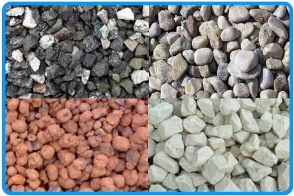 - Искусственные — керамзит, аглопорит, гранулированный или отвальный шлак, вспученный перлит или вермикулит.