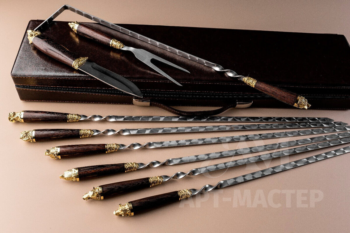 Набор шампуров «Скиф» - подарок с характером! С грозным характером древнего кочевого народа. Суровый характер древних воителей стал вдохновением для наших мастеров. Набор олицетворяет мужскую силу духа, неукротимую энергию, решительность в достижении целей. Если вы хотите найти подарок для такого человека, то вот он, перед вами!