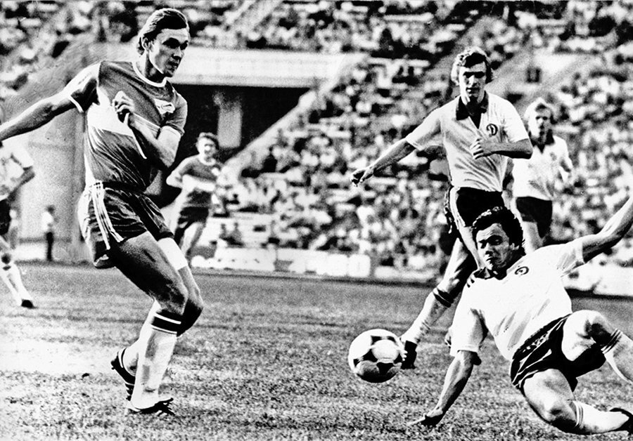 – Более того, не только динамовские болельщики, но даже некоторые спе-циалисты обвиняли меня, что я, мол, не дал пенальти за «снос» Колыванова. Меня даже чуть ли не в кровные враги московских динамовцев записали! Но дело в том, что в данном эпизоде я находился рядом со штрафной площадью и прекрасно видел, что произошло. Колыванов, принявший мяч в том эпизоде почти на углу вратарской, чуть пробросил его себе на ход и вместе с защитником киевлян рванулся за ним, но Игорю не повезло: в момент контакта с соперником (жесткого, но, на мой взгляд, вполне в рамках правил) он оторвал опорную ногу от поля, а поскольку шел на высокой скорости, то потерял равновесие, оказавшись на ковре. То есть умышленной грубости со стороны защитника не было.