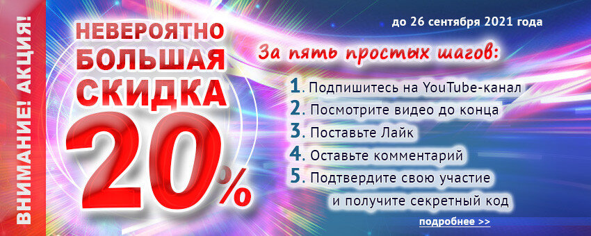 ВНИМАНИЕ! АКЦИЯ! Уважаемые покупатели, специально для Вас, интернет-магазин stabovoz.ru совместно с компанией SUNTEK проводит акцию: НЕВЕРОЯТНО БОЛЬШАЯ СКИДКА 20% на любой стабилизатор напряжения SUNTEK Для того чтобы поучаствовать в акции и получить скидку, необходимо выполнить пять простых шагов: 1. Подпишитесь на YouTube-канал SUNTEK 2. Посмотрите любое видео до конца 3. Поставьте Лайк 4. Оставьте комментарий к видео 5. Подтвердите свои действия, отправив фото или скан на mail@suntek.su, и получите в ответном письме секретный код. Оформив заказ на стабилизатор напряжения на сайте stabovoz.ru и указав секретный код в комментариях, Вы получите скидку 20%. Время проведения акции: с 17 по 26 сентября 2021 года