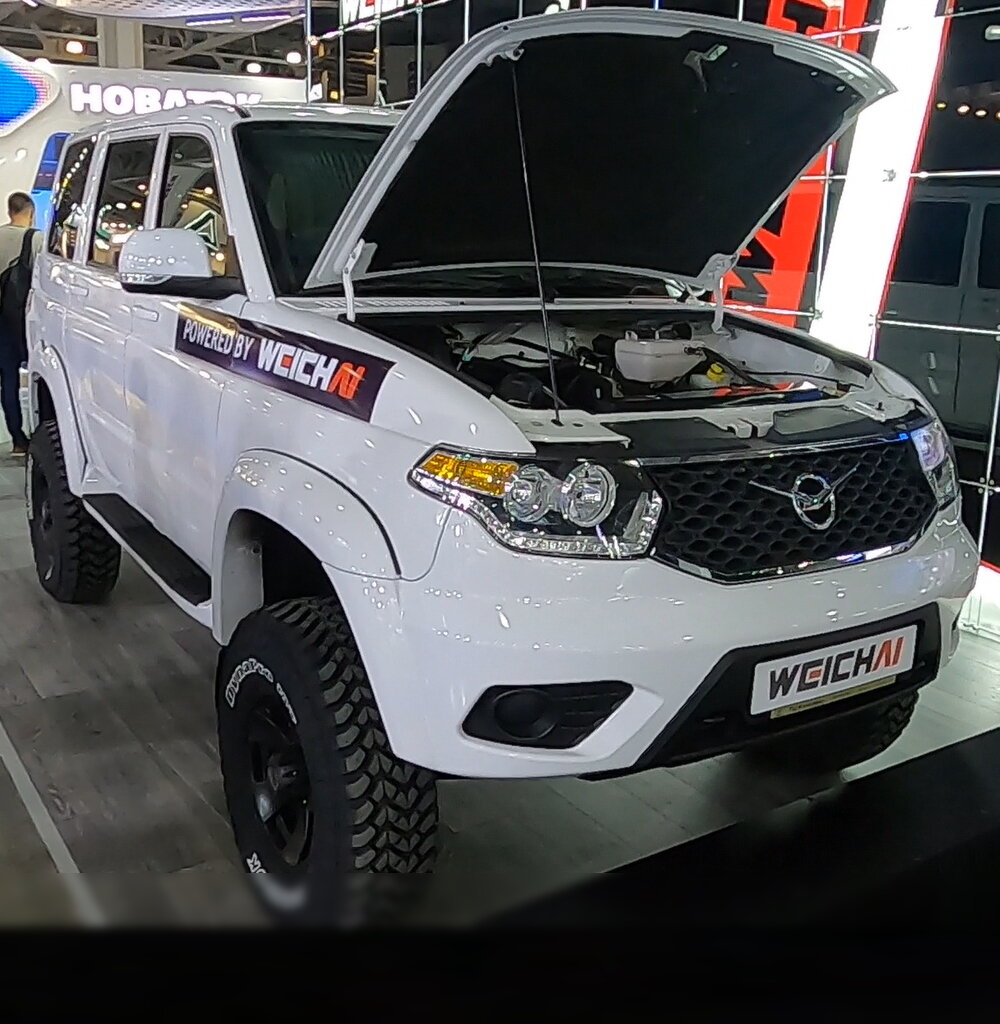 Многие владельцы УАЗ Патриот с удовольствием бы купили российский внедорожник с дизельным мотором. Низкий расход топлива и высокий крутящий момент, явно только в плюс. Но производитель из Ульяновска никакой альтернативы не предлагает. Помощь пришла откуда не ждали. Китайская компания Weichai Power, которая является ведущим производителей дизелей в КНР предложила свой вариант движка для Патриота. Мне удалось рассмотреть УАЗ переделанный под китайский мотор и поговорить с представителем компании о данной идее. Видеосюжет смотрим в конце статье, а пока вкратце расскажу, о чем речь. Рядный 4-ех цилиндровый мотор с 16-клапанным механизмом ГРМ и турбонаддувом порадует рабочим объемом 2.3 литра. В зависимости от производительности турбонаддува мощность может варьироваться от 110 до 130 л.с., а вот крутящий момент от 280 до 380 Нм. Для проведения ходовых тестов специалисты из КНР взяли самую маломощную версию мотора, то есть 110 л.с. и 280 Нм момента. В итоге такая связка показала расход в пр