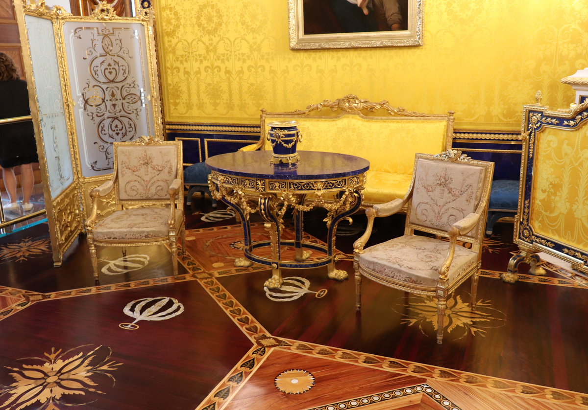 Зачем большинство туристов едут в Царское Село и покупают довольно дорогие билеты в Екатерининский дворец? Главным образом, чтобы посмотреть Янтарную комнату, ну и другие залы между делом тоже. Но с недавнего времени в этом же дворце открыт еще один восстановленный зал, про который нет столько легенд, как о Янтарной комнате, но при этом с точки зрения дороговизны и интересности интерьера – он, пожалуй, даже затмевает ее. Речь о Лионском зале, в котором не так давно полностью завершили реконструкцию. Лионским этот зал называется потому что для оформления его стен использовали шелковую ткань, изготовленная во Франции, в Лионе. Но главная фишка этого зала – вовсе не ткань золотого цвета, а сочно-синяя отделка лазуритом. Дело в том, что это – полудрагоценный камень, который не то, чтобы сильно распространен и стоил он в XVIIIвеке довольно дорого. За самый качественный лазурит, который добывали в Бадахшане (северо-восток нынешнего Афганистана), а потом везли серебряными караванами через Кит