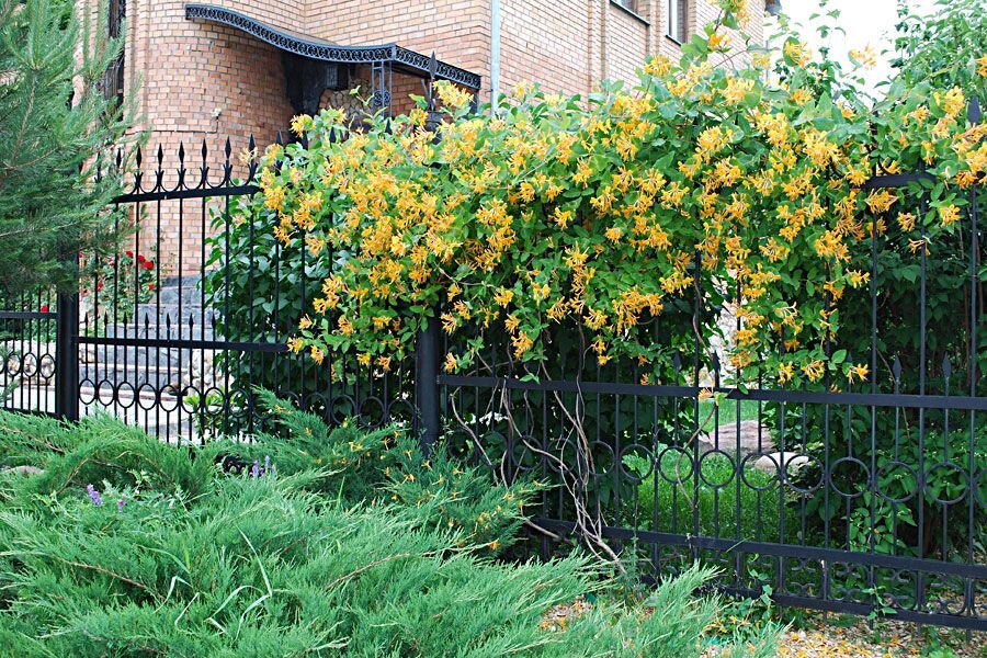 Благодаря растениям вы сможете обновить внешний вид ограждения, при этом существенно сэкономив домашний бюджет. Для озеленения подходят разнообразные вьющиеся культуры, которые не требуют постоянного ухода. Что же посадить за забором: 1. Лианы Вдоль забора можно высаживать однолетние лиановидные растения: душистый горошек, кобею, высокорослую настурцию, огненно-красную фасоль. Обильно цветёт и быстро растёт азарина лазающая, побеги за лето достигают 5 м. Популярны и другие вьющиеся виды: эхиноцистис лопастный, ипомея, квамоклит лопастный, долихос, крылатая тунбергия. 2. Кустарники Унылый вид сплошного забора из профлиста или доски преобразят кустарники. Используются цветущие или плодово-ягодные кустарники. К неприхотливым видам относятся: