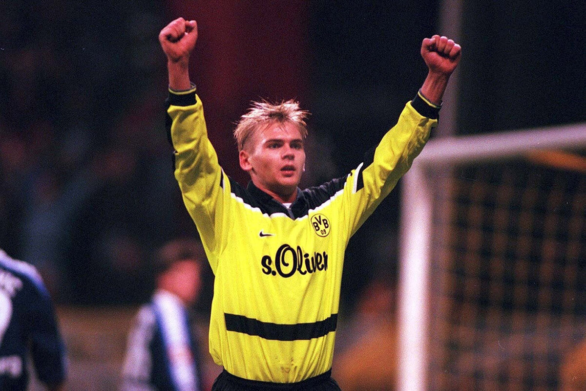 Полузащитник дортмундской «Боруссии» Владимир Бут вколачивает мяч в ворота «Шальке» в 1997 году! Времена, когда наши решали в Рурском дерби! 🤩