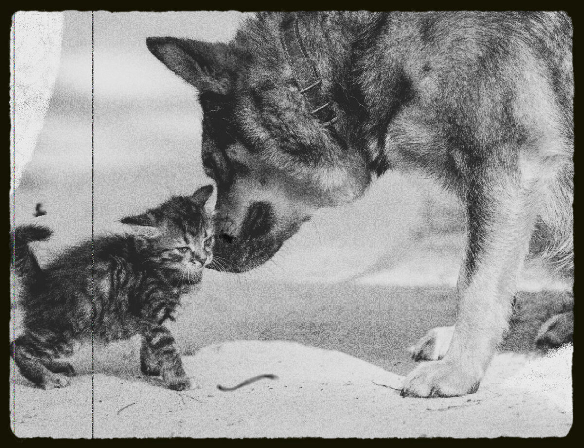 Огромная овчарка остановилась возле котёнка и... легла рядом с ним! Как старый пёс спас крошку от гибели.