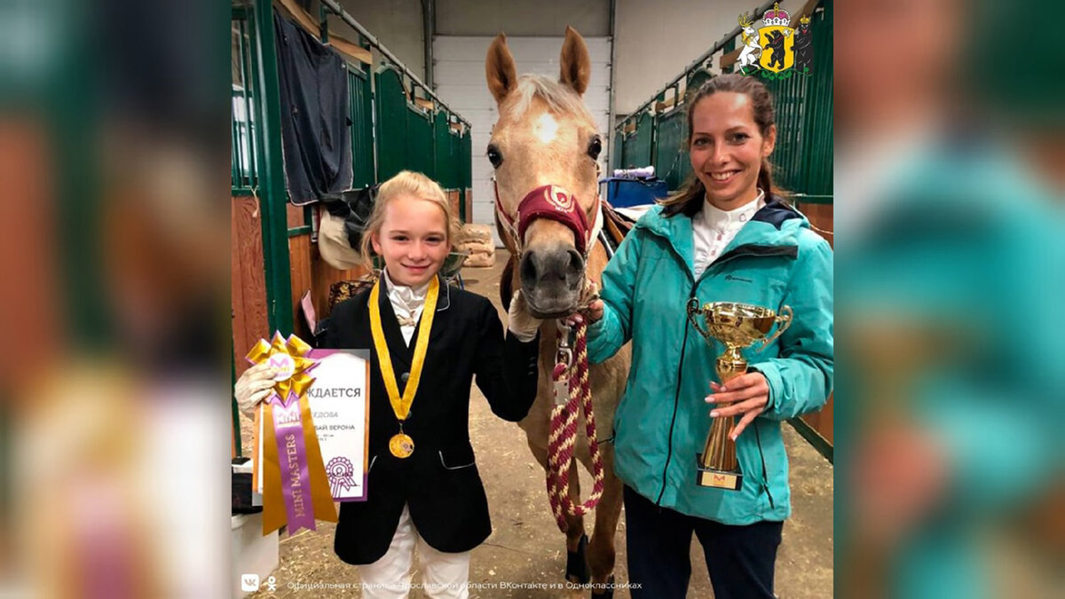 11-летняя ярославна Дарья Седова стала чемпионом первой серии соревнований в зачете для детей 10-14 лет. На всероссийском турнире Mini Masters спортсменка выступила на пони Дейзи Бай Верона. - Приехали сюда для того, чтобы победить. Я не знала, что попала в финал. Мне очень понравилось, не ожидала этого, - сказала победитель первого сезона серии Mini Masters Дарья Седова. - С ней мы занимаемся примерно полтора года. Это очень долгий и сложный процесс, но наши труды дают результаты. Мы этому рады. Лошадка характерная, но любит побеждать, - рассказала тренер Дарьи Седовой Алена Нуждина. Отметим, Дарья первая юная спортсменка, представляющая Ярославскую область на всероссийских, муниципальных и региональных турнирах на пони. Соревнования прошли в Московской области. Участие в них приняли начинающие всадники, а также спортсмены на пони и молодых лошадях. #верховая езда #спортсмен #Дарья седова #чемпион #Дейзибайверона