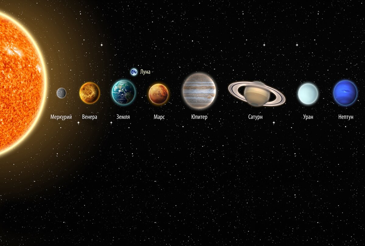 Солнечная система включает в себя Солнце и все обращающиеся вокруг него объекты: планеты и их спутники, каменные и ледяные глыбы, а также большие скопления космической пыли. Солнце Солнце - это звезда, которая представляет собой огромный раскалённый шар газа. Его гравитация оказывает влияние на все объекты солнечной системы, которые находятся на расстоянии примерно до 6 млрд км, и заставляет их вращаться вокруг Солнца. Оно также является самым массивным объектом в пределах Солнечной системы. Планеты Планеты - самые крупные из тел, которые вращаются вокруг Солнца. На данный момент таковых известно восемь. Все они вращаются вокруг Солнца по приблизительно круговым траекториям - орбитам. Четыре самых близких к Солнцу планеты - это Меркурий, Венера, Земля и Марс, их размеры невелики и они состоят из плотных горных пород. Более удалённые планеты от Солнца находятся за поясом астероидов, их называют внешними - это Юпитер, Сатурн, Уран и Нептун. Их поверхность состоит из льда, газа, жид