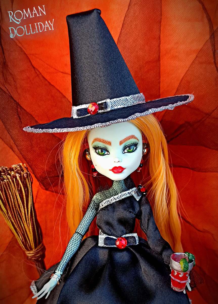 Доброго времени суток всем заглянувшим! Год назад нарисовалась у меня ведьмочка по имени Гленда, которой настолько приглянулась наша скромная кукло-компания, что покидать ее она наотрез отказывалась. Не знала, бедолага, что ее хозяйку мучит синдром Данилы-мастера, и через некоторое время у нее начинают чесаться руки переделывать свои старые ООАКи. Вот и добралась-таки я до этой рыжей любительницы вечеринок. К наряду никаких претензий у меня не возникло, а лицо захотелось переделать. А заодно и проверить, появился ли прогресс в рисовке за этот год. Девочка "умылась" ацетоном, "припудрилась" Клиром и в ход пошли акварельные карандаши и сухая пастель. Рисунок на первом слое Клира получился довольно нежненький. Но делать милую ведьму я совсем не планировала, поэтому следующий слой получился более насыщенным, а макияж более вызывающим. И все равно девчонка получилась больше похожа на соседку по подъезду, чем не на лихую любительницу вакханалий и разу