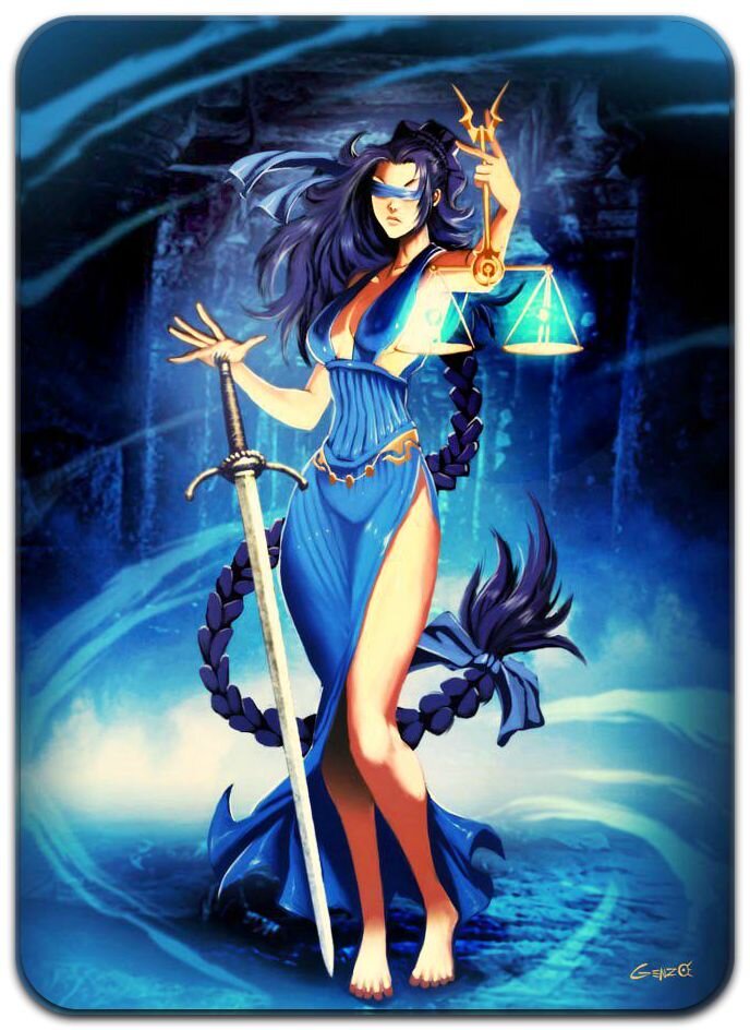 В греческой мифологии богиня правосудия, председательствовавший на собраниях богов и людей и разрешающая споры. Она была титанидой, дочерью Урана и Геи и возлюбленной Зевса, которому родила гор (богинь времен года) и мойр (богинь судьбы). Считалось, что она обладает даром прорицания. Именно Фемида сообщила Прометею, что женитьба Зевса на Фемидой приведёт к рождению сына, который впоследствии свергнет Зевса. От своей матери Геи она получила Дельфийский оракул, который затем передала своей сестре Фебе, а та отдала это прорицание своему внуку Аполлону. Изображалась с повязкой на глазах (призрак беспристрастия), с рогом изобилия в одной руке и с весами в другой.