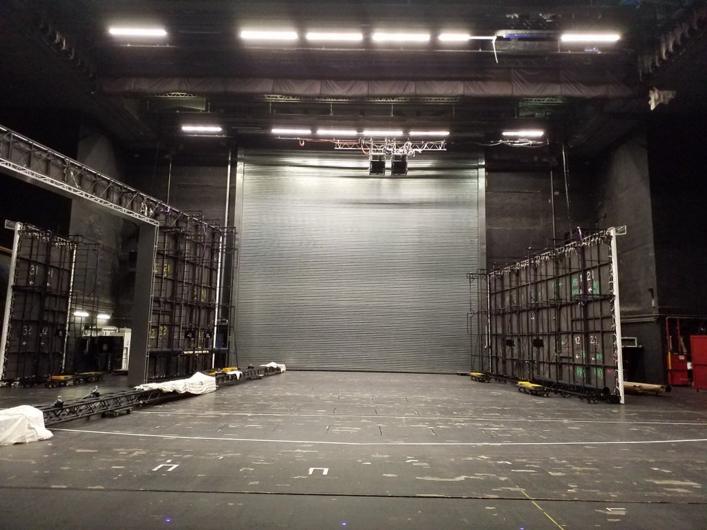 Многое я уже публиковала. Когда во время спектакля происходит смена больших (объемных) декораций их увозят именно сюда. Здесь же они хранятся до следующего спектакля, то есть до следующего дня. Последние лет 10-15 спектакли в театре идут блоками. Здесь же, на задворках главной сцены, декорации собирают.