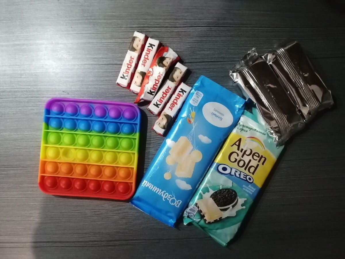 Приступаем! Тут можно экспериментировать, добавлять что-то в шоколад, как-то его украшать. Из подходящих компонентов дома были только кедровые орешки, их и использовали в итоге. Топим шоколад Можно, конечно, это делать на водяной бане, но мне было лень заморачиваться, поэтому просто взяла антипригарный ковшик. Алиса разломала шоколад, покрашила печеньки орео. Осталось только перемешать все до однородной массы. Берем поп-ит Подождали минуты 3, чтобы шоколад хоть чуть-чуть остыл, и приступили к делу. Кстати, поп-ит ничем не смазывала. Он из материала, к которому ничего не липнет, за это можно не переживать. Алисе аккуратно чайной ложной наполняла поп ит так, чтобы она была залита шоколадом полностью, во всех уголках и также сверху покрашила печенье орео. В холодильник! Ну и осталось только убрать это добро в холодильник замораживаться. Убрали часа на 2-3 в морозилку. Шоколад отделялся от игрушки очень хорошо, никаких проблем при доставании не возникло. Единственное, я бы еще часок