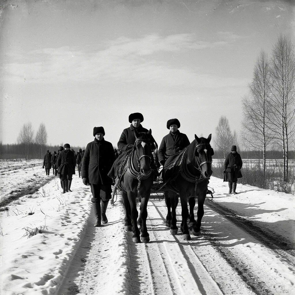 Глава2 Ужинали поздно, при свете костра. Кутья развалилась, казалась такой вкусной и ароматной. Ефим с дочками ели прямо из котелка деревянными ложками, а Матрёна сидела в сторонке, кормила маленького сынишку грyдью. -Совсем развалились... И лыка то здесь не найти, всё степи кругом, - Ефим сокрушено рассматривал прохудившиеся лапти и всё из-за того, что частенько приходилось идти пешком, чтобы лошади было легче тянуть нагруженную телегу. Начало. После ужина - отбой, но старшой, наученный горьким опытом, назначил двоих мужиков охранять обоз. В прошлый привал на них напали, какая-то шайка бородатых мужиков окружили их, пытались отобрать лошадей, еле-еле отбились. Хорошо, что с собой прихватили дробовик, разок пальнули в воздух и разбойники разбежались. *** Как только начало светать опять тронулись в путь. Спустя два часа вдали показались какие-то постройки. Переселенцы с волнением рассматривали старенькие, потемневшие от времени деревянные дома, обгороженные плетеным забором. Ул