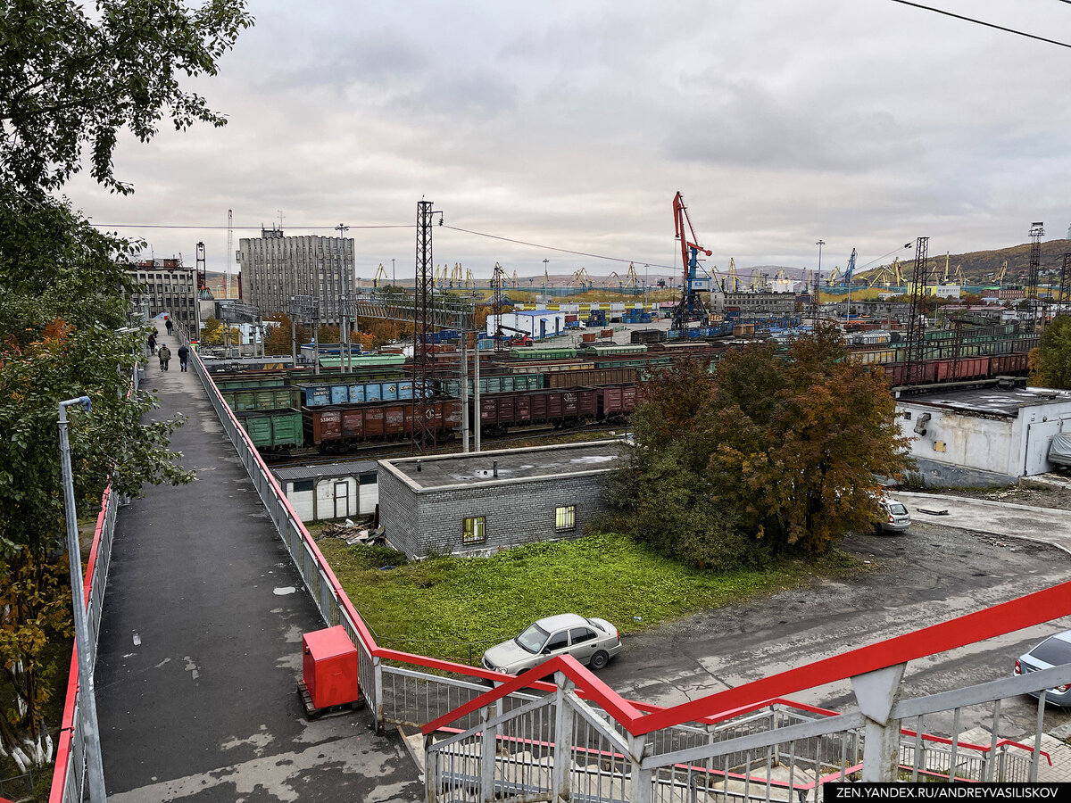 В Мурманске я бывал десятки раз, но так уж получилось, что единственный раз, когда я посещал местный порт случился ещё в моём детстве - тогда нас привозили на экскурсию на атомный ледокол "Ленин". Само собой, с тех времён я практически ничего не помню. Поэтому в очередной свой визит в столицу Арктики я решил закрыть гештальт и отправился на прогулку по порту. Прогулку начинаем от мурманского вокзала. Кстати, внутри вокзала очень красивый купол - если будете в Мурманске - советую заглянуть и посмотреть. Дальше нужно воспользоваться неприметным переходом, который приводит вас на пешеходный мост через железнодорожные пути. Отсюда порт уже отлично виден. Вернее, его небольшая часть - весь мурманский порт это огромная территория размером в 645 гектаров. Кстати, по объему обрабатываемых грузов Мурманский порт занимает 5 место в России - больше грузов проходит только через Новороссийск, Усть-Лугу, Находку и Санкт-Петербург. К площади, где стоит мурманский морской вокзал идёт симпатичная алле