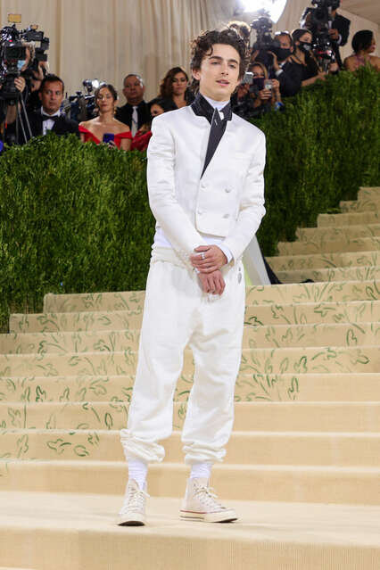 Совсем недавно в ночь с 13 на 14 сентября состоялось всеми ожидаемое ежегодное событие «Met gala 2021”. Тимоти Шаламе предстал нам в образе от Haider Ackermann. Белый укороченных пиджак с черным воротником и почти спортивные штаны в комплекте с кедами от Converse. Его лук на красной дорожке очень порадовал многочисленных поклонников и поклонниц актёра. В интернете его уже успели назвать одним из лучших образов на мероприятии. И мы, пожалуй, согласимся с этим