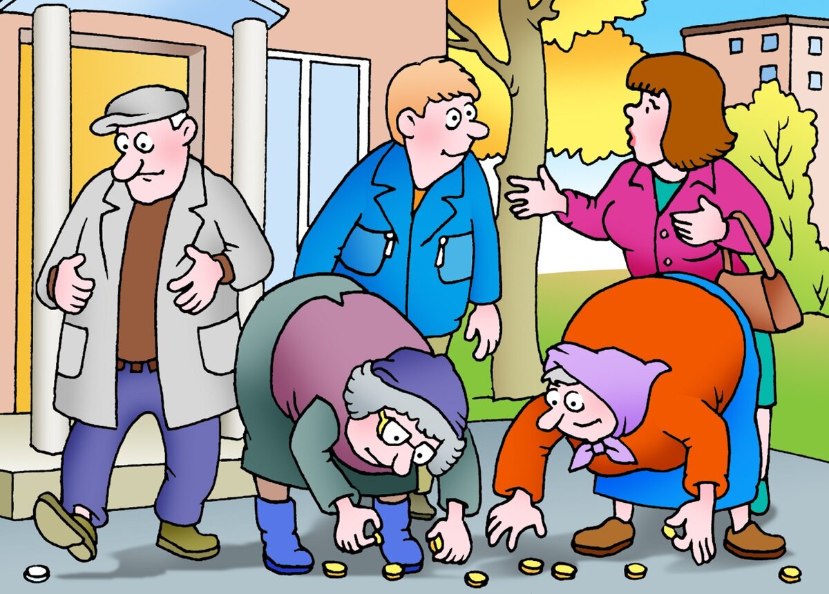 Первая старушка подумала, с сожалением положила на асфальт собранную мелочь и, не оглядываясь, торопливо ушла.