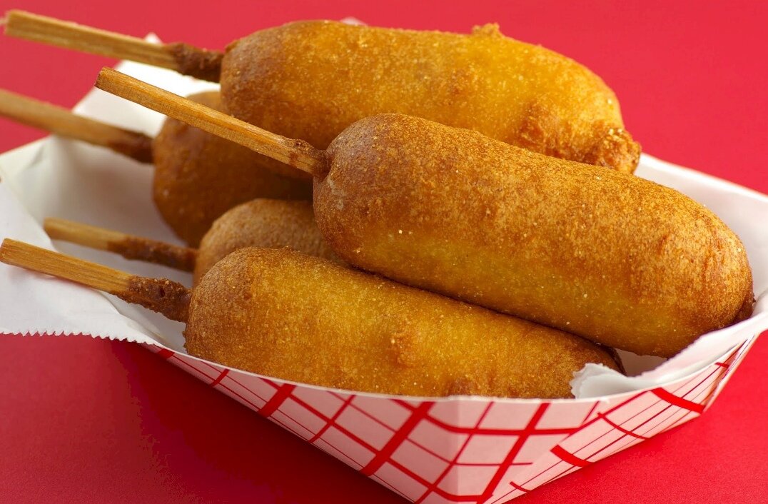 Мне кажется лучшим дополнением для стола ,в такой праздник,будет блюдо корн-доги,детям они 100% понравятся! Что нам нужно для блюда? Сосиски - 350 г Яйцо - 1 шт. Мука пшеничная - 100 г Мука кукурузная - 100 г Разрыхлитель - 1/2 ч. л. Молоко - 50-70мл Соль - 1/3 ч. л. Сахар - 1/2 ч. л. с горкой Масло растительное -это для фритюра Пошагово приготовим: 1шаг.смешиваем муку 2шаг.добавляем яйцо для получения теста 3шаг.сосиски обваливаем в муке,окунаем в тесто полностью 4шаг.разогрваем фритюр до 150-170 градусов,обжариваем сосиски Вот очень вкусные корн-доги и готовы)
