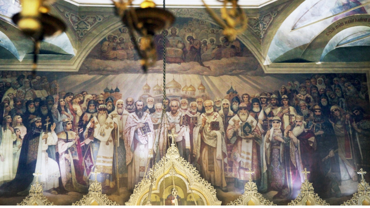 Так бывает. Читал в справочнике о достопримечательностях моего же района Москвы, зацепился глазом за фразу: «самая большая в этой церкви живописная композиция, „Собор Всех Святых“ расположена над главным иконостасом. Выполнена в конце 1940-х годов в васнецовском стиле».