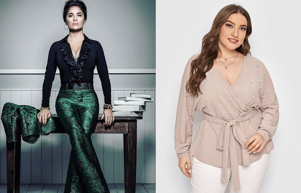 А кто-то не поверит, что большая грудь может быть проблемой. Это ж божье благословение, никак иначе... И только дамы с пышным бюстом знают, как трудно подбирать одежду так, чтобы не казаться полной, когда ты вовсе и не полная — во всех остальных местах. А уж если вы маленького росточка, да ещё широкоплечая и узкобёдрая. Да не дай бог с возрастом обзавелись животом… В общем, проблем с большой грудью немало. Как одеться? Попробую дать несколько советов. Ставка на V-образный вырез Признайтесь, вы уже знали об этой хитрости. Это волшебное V словно разбивает объём сверху, создаёт гармонию пропорций и зрительно делает грудь чуть меньше. Ну и вытягивает немного — опять же визуально. Только не переборщите с глубиной выреза, если это не вечернее платье. Хотя, если ваш бюст столь же прекрасен, как у Сальмы, можно и переборщить :) Правильный низ Если у вас округлые женственные бёдра и неширокие плечи, низ может быть и прямым, узким. А вот дамам с узкими бёдрами и широкими плечами, как, напр