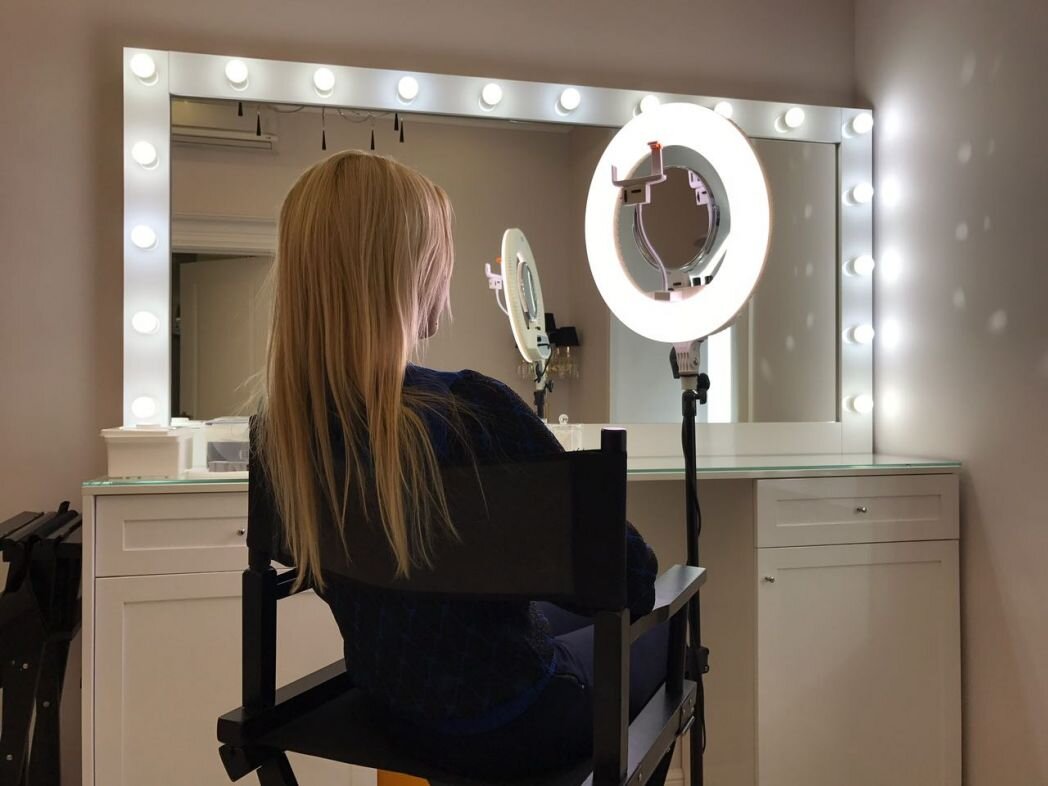 Самый лучший свет для создания макияжа в салоне красоты или в домашних условиях – это кольцевая лампа для визажиста. В нашей статье мы расскажем обо всех преимуществах профессионального освежения для визажистов по сравнению с обычными лампами. Вчем преимущества подобного оборудования? Первое и важное преимущество светодиодной лампы для визажистов, например, от домашнего освещения или настольной лампы – это равномерный белый свет, который является идеальным для мастера по макияжу. Иногда девушки не придают серьезного значения правильному освещению при нанесении макияжа в домашних условиях, используя непрофессиональное освещение: настольные лампы или зеркала с лампочками по сторонам. Подобное освещение, в последствии на улице или при более ярком дневном (солнечном) свете может испортить внешний вид. На дневном освещении будут видны четкие границы контуринга или тонального крема, перебор с румянами, тенями для век и другие погрешности макияжа из-за неправильного освещения. А от зеркал с л