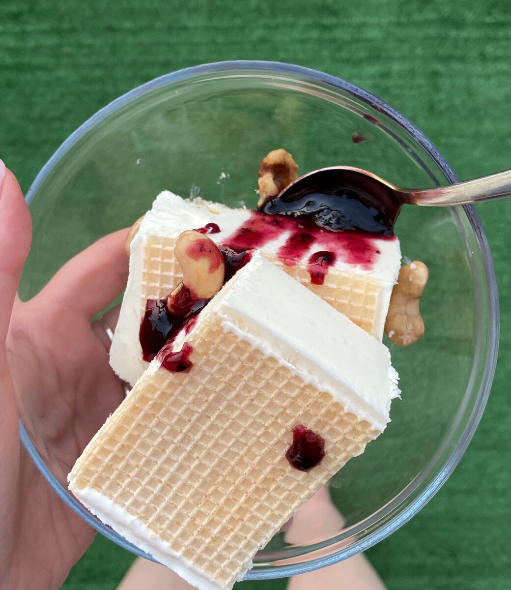 Всего 3 продукта, а вкус - обалденный! Домашнее мороженое! Взбиваем 33% сливки Добавляем сгущённое молоко (для вкуса крем-брюле нужно добавить варёную сгуху). В форму кладём лист вафельного коржа, выкладываем нашу смесь, закрываем вторым листом вафли. Ставим в морозилку!! Всё!! И всё!!!