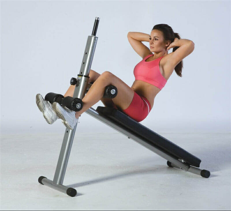 Для выполнения упражнения необходимо установить оптимальный уровень наклона скамьи. Для новичков и людей с объемным животом рекомендуется выставлять угол от 20 до 30 градусов. Мужчинам и женщинам с хорошей физподготовкой наклон должен быть увеличен до 45-60 градусов.
