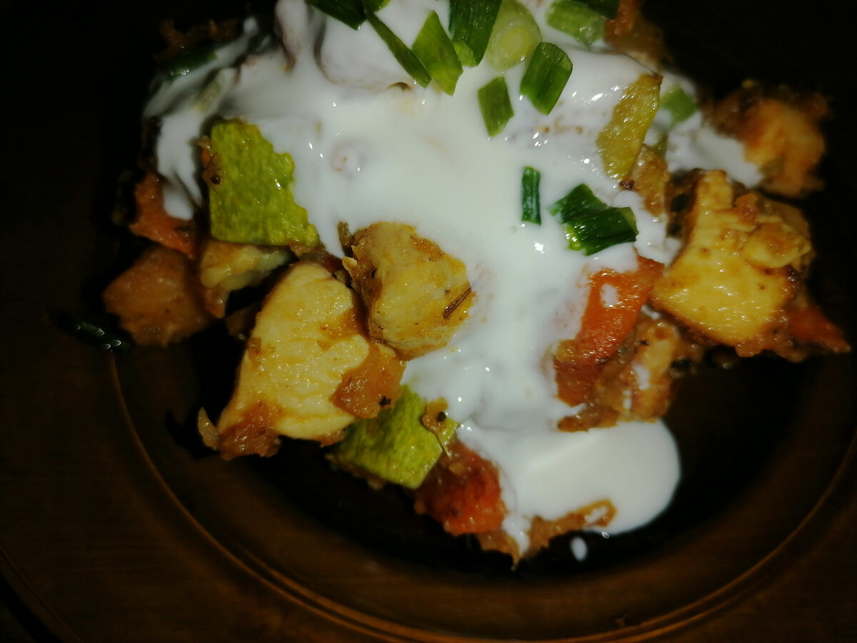 Сегодня мне захотелось приготовить куриные грудки с овощами. Кстати, я курицу покупаю целиком и разделывал на "запчасти", так получается более выгодно, и к тому же из каждой части можно приговить отдельные блюда. В это блюдо ещё хорошо добавить болгарский перец, но мне было лень идти в магазин за ним) Ингредиенты Куриная грудка Картофель Кабачки Лук репчатый Морковь Базилик сухой Орегано сухое Паприка Соль Перец свежемолотый Масло растительное Приготовление Нарезаем картофель и морковь средним кубиком и жарим минут 5-6 Отправляем в сковороду грудку и лук. Жарим до появления коллера на курице Добавляем кабачки и продолжаем готовить ещё минут пять Кладём все специи, солим и перчим. Перемешиваем, закрываем крышкой и оставляем на медленном огне ещё на пять минут В качестве соуса отлично подойдёт натуральный йогурт без добавок Приятного аппетита! Подписывайтесь на мой канал и ставьте палец вверх. Всем удачи и хорошего настроения! #курица с овощами #куриная грудка #рецепты