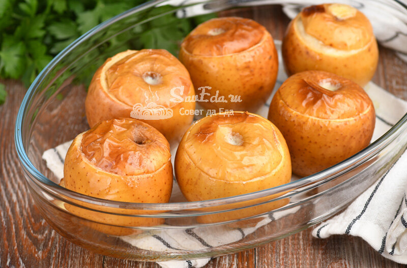 Это очень нежные и вкусные запеченные яблоки с яичной начинкой. Начинка прекрасно сочетается с яблоками и придает им изюминку. Готовится десерт легко и из небольшого количества простых продуктов. А какие ароматные они получаются! Порции 6 Время подготовки 25 минут Время приготовления 30 минут Ингредиенты Инструкции 1. У яблок со стороны плодоножек срезаем крышечки, с помощью небольшого ножа и чайной ложки вынимаем сердцевину. Делаем большое пространство для начинки. Яблоки накрываем крышечками. 2. Остатки от яблок без семян и мембран нарезаем на небольшие кусочки, выкладываем в сковороду с маслом (1 ст. л.) и быстро обжариваем до мягкости. Немного остужаем. 3. В миске взбиваем венчиком яйца небольшого размера с сахарной пудрой. Пудру можно заменить на обычный сахар, просто чуть дольше взбиваем. 4. Вливаем сливки (у меня 20% жирности) и еще недолго взбиваем. 5. Добавляем обжаренные яблоки, перемешиваем и начинка готова. Она получается жидковатая. 6. Подготовленные яблоки перекладываем