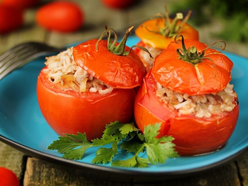 - Помидоры наполнить приготовленной начинкой.