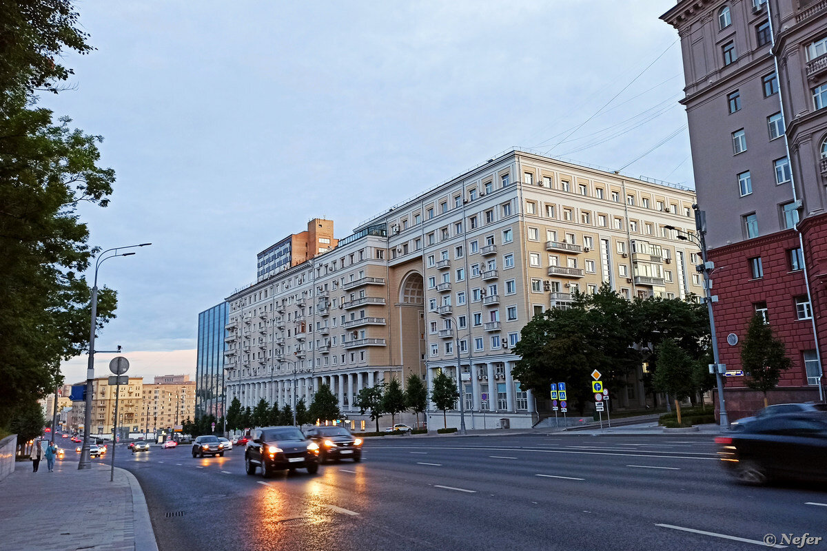 Это самая высокая арка в жилом доме Москвы: высота 20 метров, 7 этажей. Интересен и сам дом: в нем нет однокомнатных и двухкомнатных квартир. Дом построен в 1934 году и расположен на Садовом кольце, улица Земляной вал. Девять этажей, пять подъездов, 72 квартиры. Из них 35 трехкомнатных, 26 четырехкомнатных и 11 еще более многокомнатных. Авторы проекта: Александр Хряков, его жена Зоя Брод и Николай Безруков. Александру Хрякову впоследствии вручат Сталинскую премию за работу над главным зданием МГУ и Ленинскую премию за Лужники. Арка действительно производит впечатление. Кроме внушительной высоты, она имеет немалую ширину: в ней свободно разъезжаются два автомобиля. Мне кажется, и три пройдет. Вид на арку со стороны двора. Изначально планировался более масштабный проект. Комплекс доходил до Яузы и продолжался вдоль набережной. Но началась Великая Отечественная война, успели построить только первый корпус. Строительство возобновили лишь в начале 1950-х. Построили второй дом. В