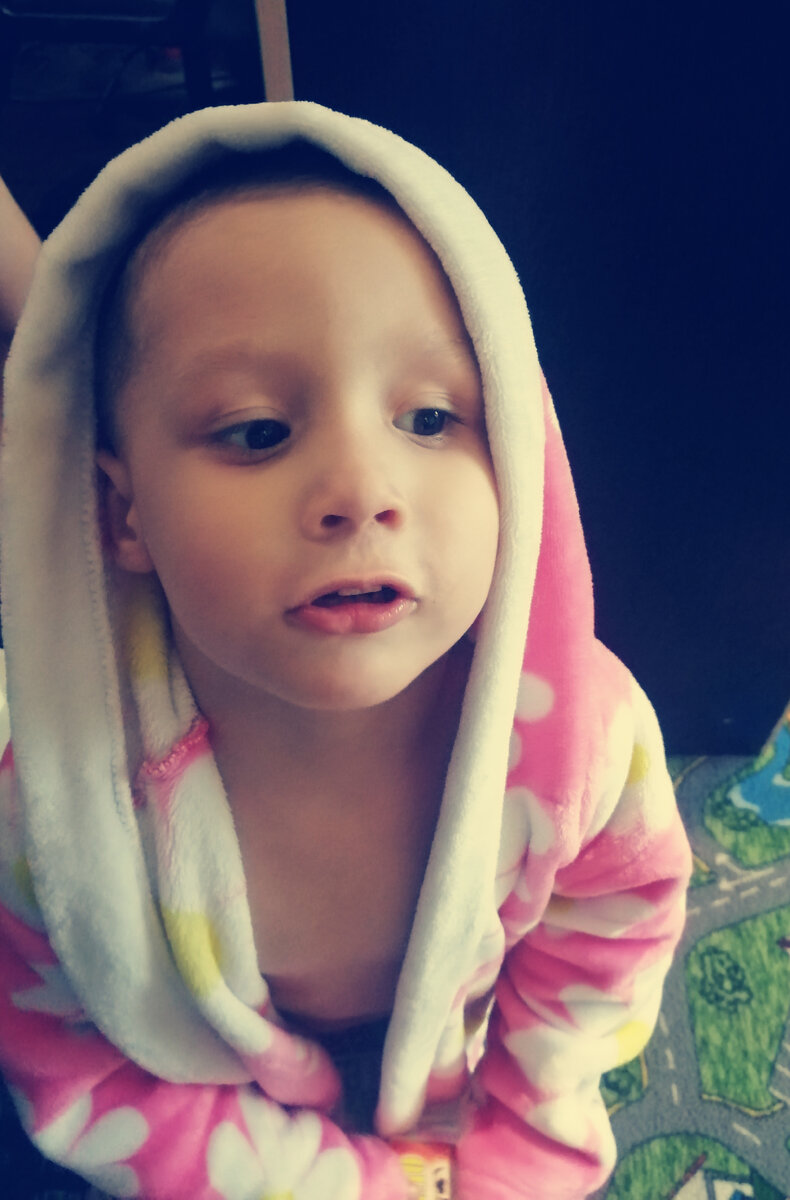 Средний - сыночек Артём. Ему 4 года. Обаяха, милаха и добряха. Но ужасно неуклюжий, и часто пакостный. Недавно у него подтвердилась ужасная неизлечимая болезнь - мышечная дистрофия Дюшенна.
