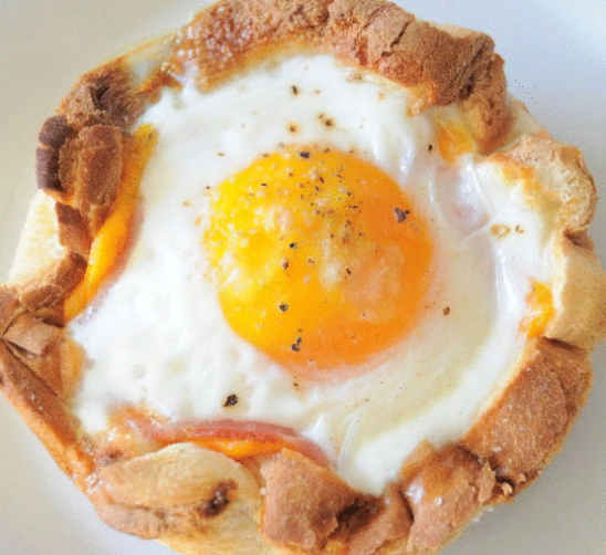 4 яйца 100 гр. вареной колбасы 50 гр. зеленого горошка (замороженного или консервированного) 1/ 2 небольшого болгарского перца 50 гр. твердого сыра соль молотый перец сливочное масло для смазывания формы Яйца слегка взбить, посолив и поперчив по вкусу. Колбасу нарезать тонкими шайбочками. Перец измельчить небольшим кубиком. Зеленый горошек, если замороженный, то побланшировать в кипятке пару минут, если консервированный, то слить жидкость. Сыр натереть на крупной терке. Форму подходящего размера щедро смазать сливочным маслом. Теперь собираем яичницу-лазанью. На дно формы насыпать слой смеси горошка и перца. На овощи положить слой колбасы. Сверху вылить половину яичной смеси. Затем опять слой овощей, колбасы и яичной смеси. Завершить сборку, посыпав лазанью-ячницу натертым сыром. Поставить форму в предварительно нагретую до 180°C духовку и запекать около 15 минут. Как только верх яичницы зарумянится, она готова.