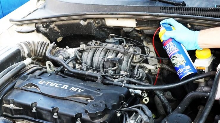 Потом необходимо надавить на распыление баллончика, чтоб закачать в движок жидкость и запустить его. Это лучше созодать вдвоем. Мотор будет работать на очистителе и остатках бензина. Жидкость необходимо повсевременно подавать, чтоб движок не заглох. Как давление горючего уменьшится, покажется вибрация мотора, опосля этого чистку можно заканчивать.