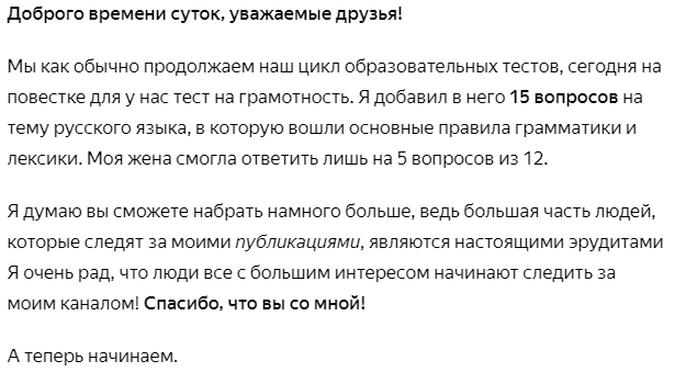 Тест на грамотность. Если вы ответите на 10 из 15 вопросов, то вы гений. Рез-тат моей жены 5/15 🔥