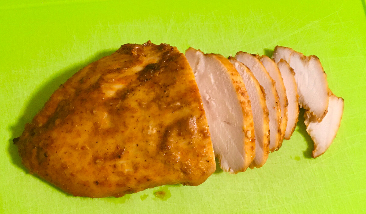 Всем доброго времени суток! Рада приветствовать вас на моём канале “Любимые вкусняшки”! Хочу поделиться с вами удивительным рецептом приготовления куриной грудки. Я сама не верила, что это будет так вкусно, потому что готовится всё очень просто! Хотя сам процесс приготовления и длительный, но вашего времени уйдёт совсем немного! Сегодня мы приготовим очень вкусную куриную грудку, которая прекрасно заменит любую колбасу или ветчину! Ну что же давайте приступим к приготовлению. Конечно же нам понадобится куриная грудка. Её нужно хорошо помыть и обсушить бумажным полотенцем. Перекладываем куриную грудку в чашку, добавляем красную паприку, соевый соус, перец, растительное масло и соль по вкусу. Всё хорошо перемешиваем , накрываем пищевой плёнкой и отправляем куриную грудку мариноваться в холодильник на ночь. На следующий день достаём куриную грудку из холодильника, и приготовим глазурь. В блюдце смешиваем горчицу, мёд, копчёную паприку, чеснок и растительное масло. Обмазываем нашей глазурь