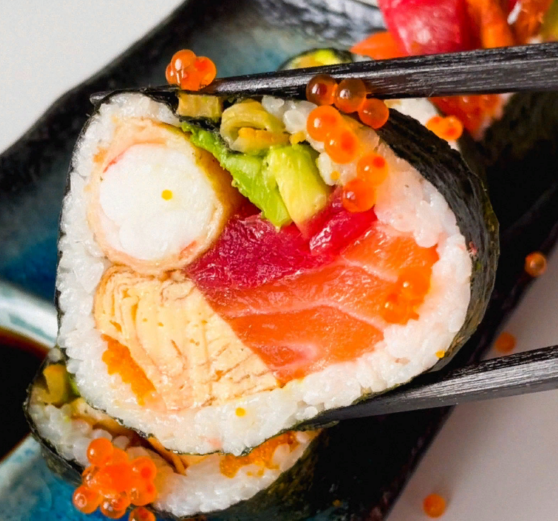 Дословный перевод футомаки - “суши в толстом рулоне".“ Во многих ресторанах omakase это заключительная часть курса. Он наполнен мешаниной ингредиентов: странными кусочками сашими, конечными кусочками тамагояки, кусочками овощей и солеными огурцами. Он наполнен тем, что обычно считается “закуской шеф-повара“. Отдельные компоненты сами по себе недостаточно хороши. Но вместе, завернутый с рисом и нори, он создает прекрасно сбалансированный и гармоничный укус. Хотя это может показаться пугающим, чтобы вместить все части в одно целое. Просто запейте его потом холодным пивом, и это будет самый приятный вкус, который вы когда-либо пробовали.
