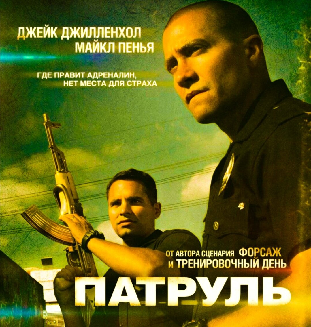 «Патруль» - криминальный боевик сценариста и режиссёра Дэвида Эйера, снятый в стиле мокьюментари. Главные роли исполняют Джейк Джилленхол и Майкл Пенья. Премьера состоялась на кинофестивале в Торонто 8 сентября 2012 года.