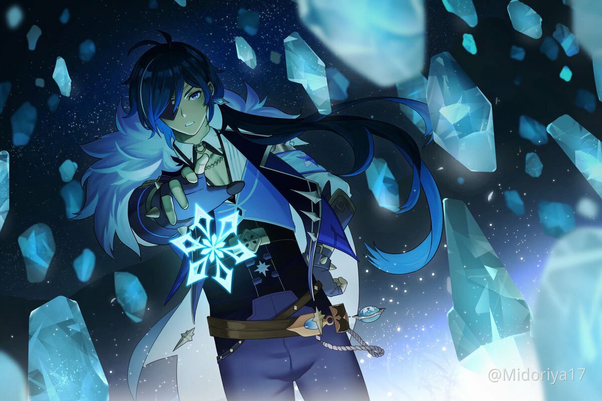 Обжигающе холодная, хрупкая элементальная энергия устремилась от его меча к пламени Дилюка. от столкновения голубого льда и красного пламени поднялся вихрь, потрясший их обоих. Именно в этот безмолвный миг Кэйе был дарован Глаз Бога.