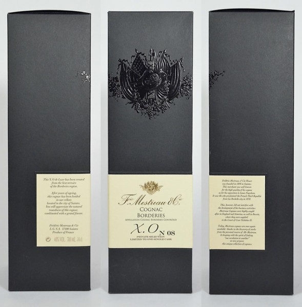 Мои читатели, всем привет! Продолжаем знакомиться с французскими коньяками. Очередная дегустация посвящена Cognac Frederic Mestreau Borderies XO №8. Обзор от моего друга Анатолия (текст и фото автора, ссылка на оригинал в конце обзора). Название "Frederic Mestreau" не очень известно, его производит "SA La Gabare" и, при желании, можно поискать информацию об истории марки. Единственное, что следует упомянуть, у производителя нет ни собственных виноградников, ни винокурен. Все спирты покупные, а благодаря налаженным связям они очень качественные (ну так пишут, сам то я, конечно, не в курсе их внутренней кухни). Коньяк был куплен случайно во время командировки в Москву: занесло меня в энотеку и уйти оттуда с пустыми руками было выше моих сил. Кстати, тогда же был приобретен и Charpentron XO опробованный ранее. Коньяк Frederic Mestreau Borderies XO №8 был награжден золотой медалью на IWSC 2015. Очень элегантное оформление коробки: черное блестящее тиснение на черном же матовом фоне и бледн