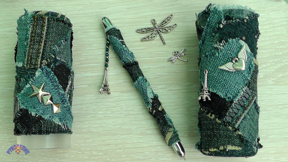 Модный пенал и ручка из старых джинсов. Как удивить друзей?
