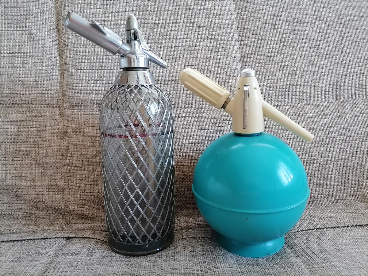 Всем здравствуйте! Не совсем о фарфоре. Но как-то нахлынули воспоминания. Уже писала, о том, что убирала квартиру своих родственников, много выбросила, в основном текстиль, но много и домой привезла. Вместо того что бы разхламлять свой дом, еще больше привезла непонятно чего. Но увидела эти сифоны, и рука не поднялась выбросить. Честно не помню, что за напиток получался, но хорошо помню сами баллончики, которые папа заправлял в сифон. А вкуса не помню совсем. Дома тоже когда-то был, а потом потерялся, даже не знаю, когда. А может просто потерял свою актуальность. А вот тетушкины сифоны остались, даже два. Очень мне нравится этот, оплетённый металлом. Выглядит как-то очень солидно. А второй попроще, пластик пластиком. У нас дома был самый обычный, металлический, без наворотов. В свое время сифоны были практически в каждой семье. А вот сейчас эти остатки былой роскоши не востребованы, лимонады продаются на каждом углу, а вот баллончики наоборот. Последний раз я слышала о сифоне лет 20