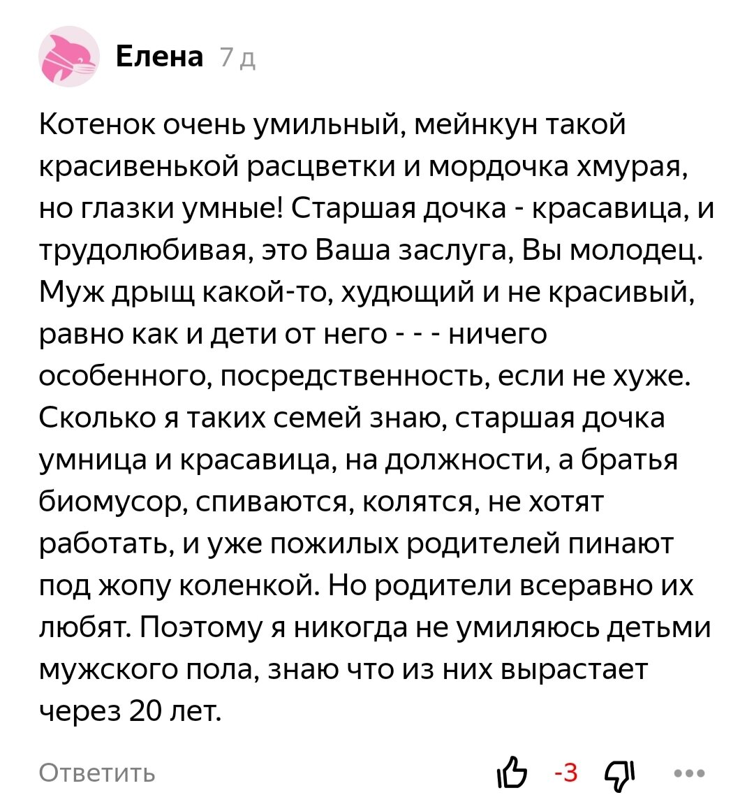 Сегодня должна была быть совершенно другая статья. Но этот комментарий прям почву из под ног выбил...И появились некоторые вопросы... Итак, собственно, сам комментарий... 👇👇👇👇👇 Самое мерзкое в этой ситуации то, что человек читает и комментирует мои статьи давно. А потом с ним вдруг неожиданно и одномоментно что-то случается. Где-то и что-то в статье цепляет его так, что задевает что-то больное в его душе. И он выдает вот это.... Вот так мерзко, мелочно и гниленько. Переворачивая весь смысл прочитанного, определяет "ху из ху" по правилам, понятным лишь одному ему.... Что с вами люди? И люди ли вы после этого? Ну что ж... Мне есть что объяснить моему читателю😏 Во-первых... Не"худющий дрыщ", а папа, папуля, папочка, батя, отец. Муж, Максимочка, Макс. Если Ваш муж и отец Ваших детей - дрыщ и посредственность - я Вам даже не сочувствую, выбирали бы другого, это ж Ваш выбор. Во-вторых... В чем выражается трудолюбивость моей дочери и как это определили по фото - для меня загадка