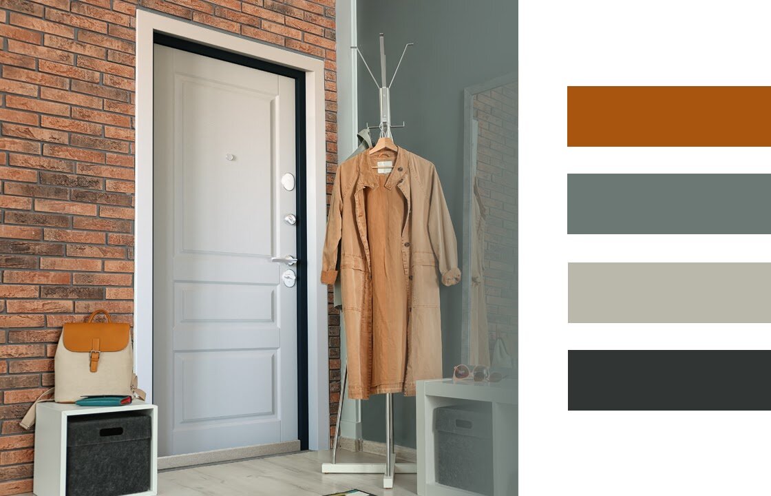 Не всегда получается подобрать входную дверь точно в цвет стен или пола. Но не отчаивайтесь! В таком случае лучше выбрать внутреннюю отделку в одном из базовых цветов. Полотно белого, бежевого, черного или серого оттенка может не сочетаться ни с одним из предметов интерьера, но при этом выглядеть абсолютно гармонично.